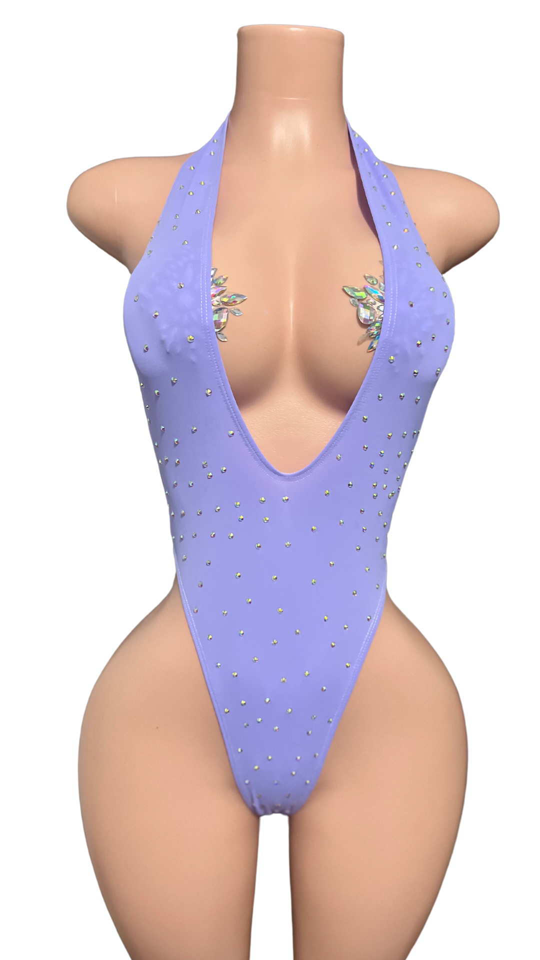 The Destiny Rhinestone Plunge Bodysuit is a handcrafted statement designed for dancers who walk into the room knowing exactly who they are. Featuring a dramatic deep-plunge neckline, halter silhouette, and scattered rhinestone detailing, this bodysuit sculpts the body while delivering unapologetic stage presence from every angle.